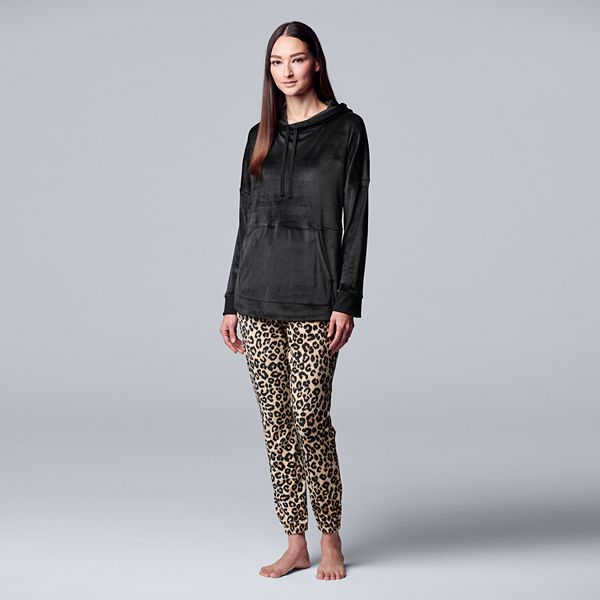Petite Simply Vera Vera Wang Velour Hooded Pajama Top And Banded Bottom Pajama Pants Sleep Set
