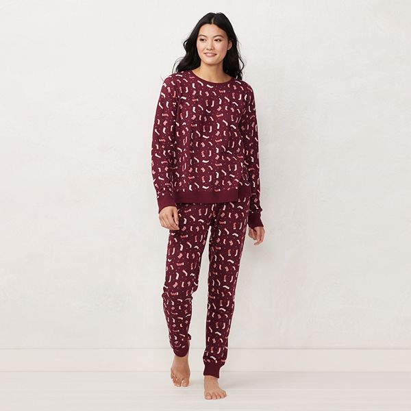 Petite Lc Lauren Conrad Cozy Long Sleeve Pajama Top Banded Bottom Pajama Pants Set